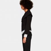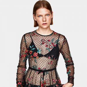 Shift dress from Ganni in Total Eclipse. Allover floral print. Round neckline. Concealed back zip closure. Long sleeves with black piping at cuff. Straight hem. Unlined. Casual fit.